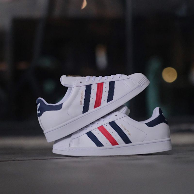 Adidas superstar foundation shop white navy red Very well made.