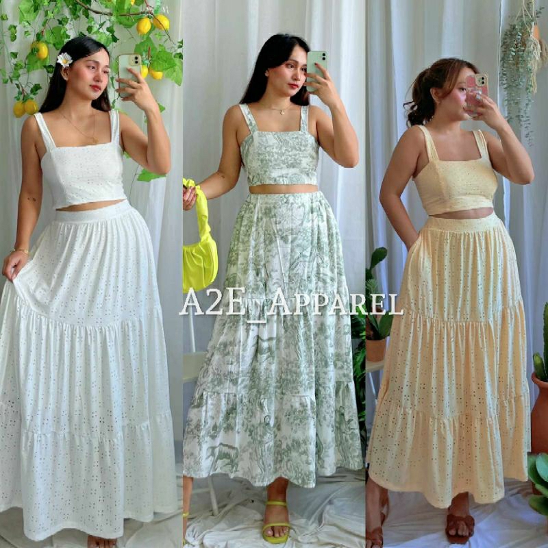 A2E IVANA COORDS EYELET COORDS COORDINATES TERNO CROP TOP WITH MAXI SKIRT Shopee Philippines Very well made.