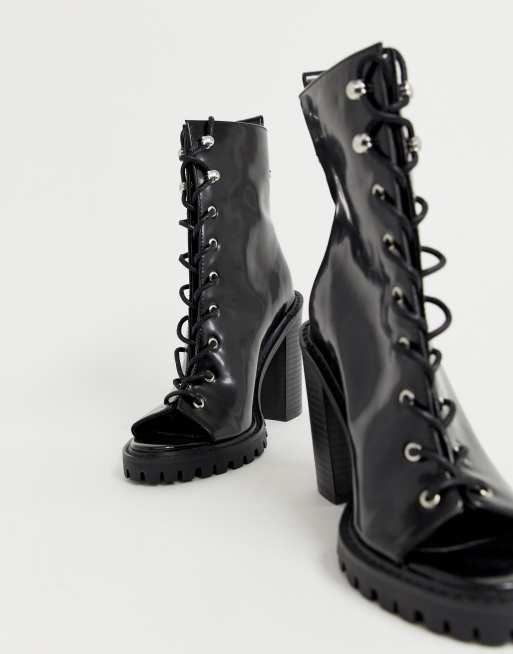 ASOS DESIGN Wide Fit Emma peep toe chunky lace up boots in black Very well made.