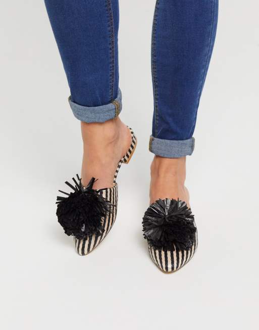 Mules en daim avec pompon Very well made.