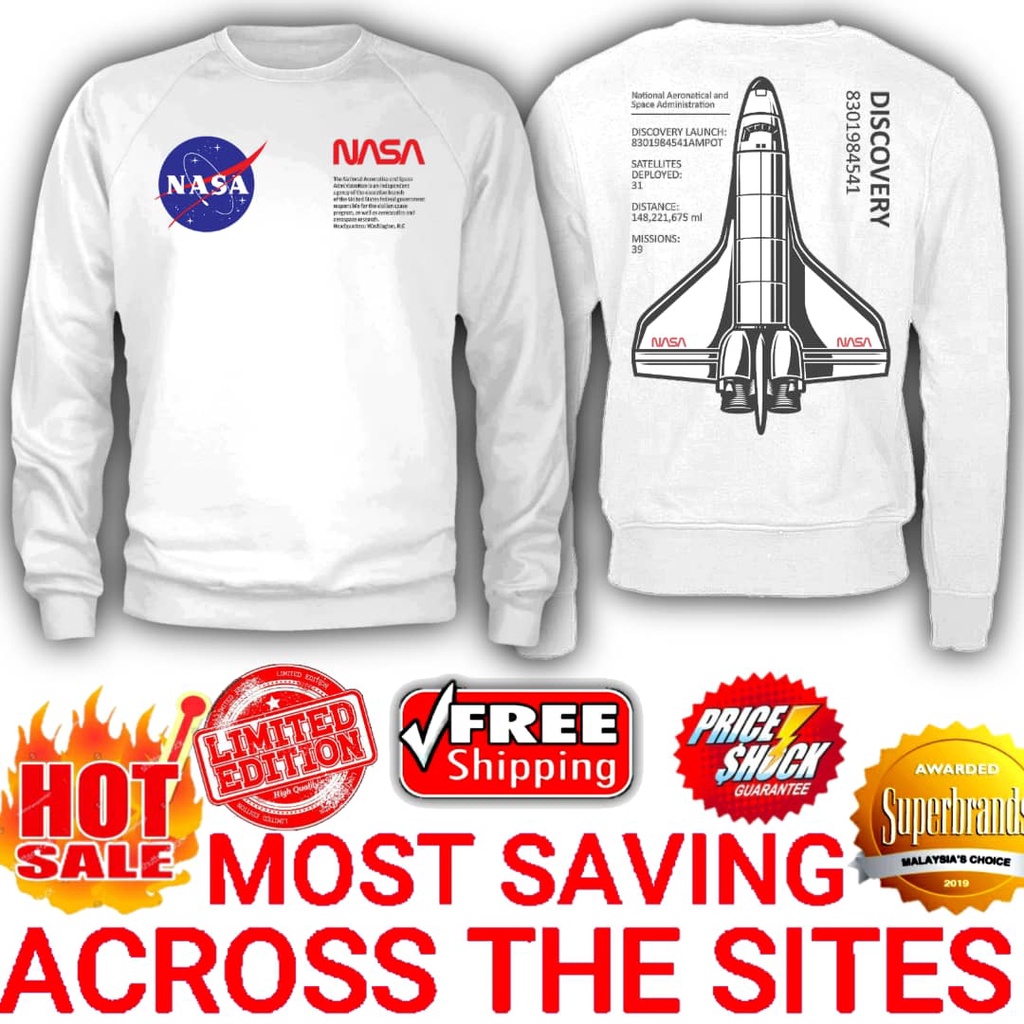 Super Premium Rocket NASA Discovery Sweater Mens Long Sleeve Casual Trending Crewneck Sweatshirt For Men Women Shopee Malaysia Very well made.