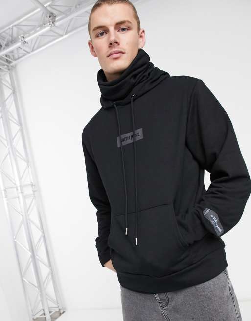 Sixth June iridescent logo hoodie with neck warmer in black Very well made.
