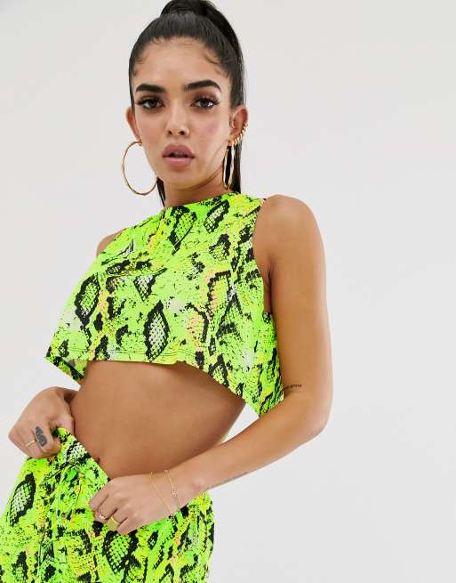 ASOS DESIGN neon snake print jersey beach crop top with wrap back Very well made.