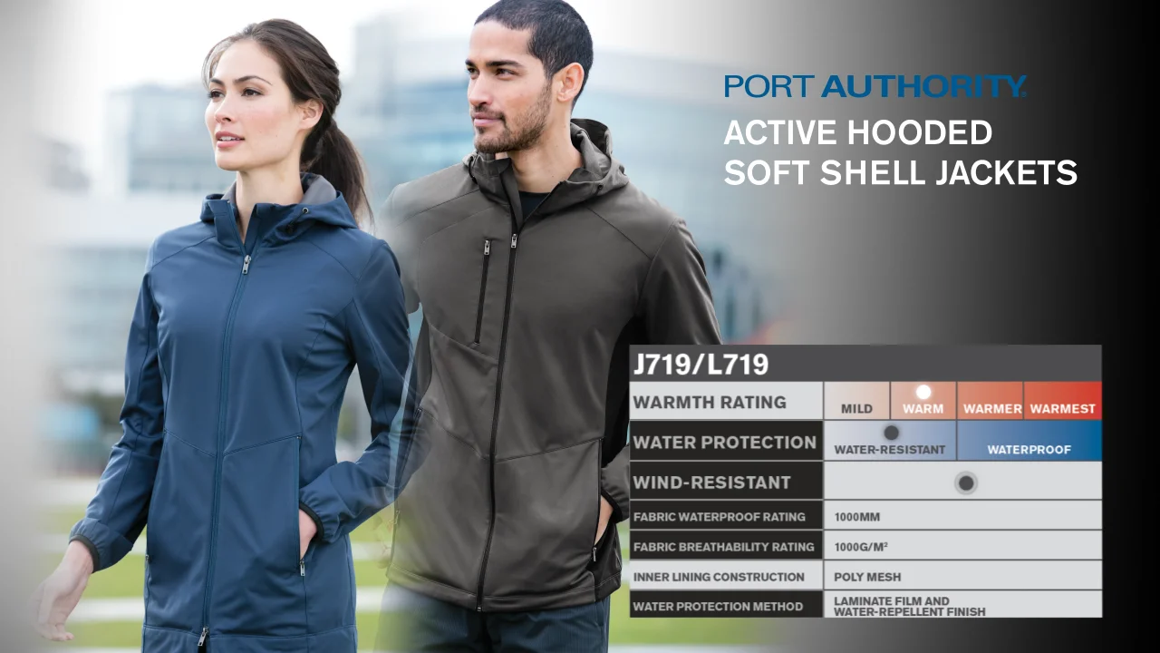 Port Authority J719 Active Hooded Soft Shell Jacket Deep Black Very well made.