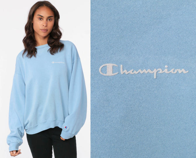CHAMPION Small Logo Light Blue Sweatshirt Wrong Weather Very well made.