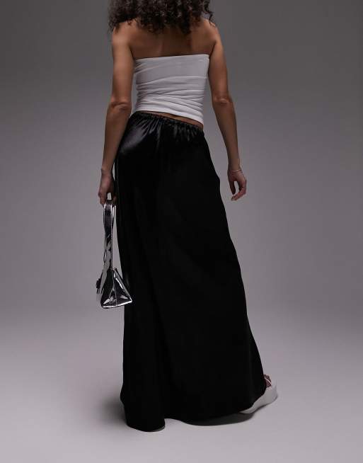 Topshop super high waisted satin maxi skirt in black Very well made.