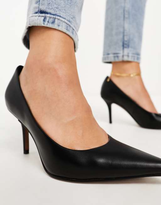ASOS DESIGN Wide Fit Sienna mid heeled pumps in black Very well made.