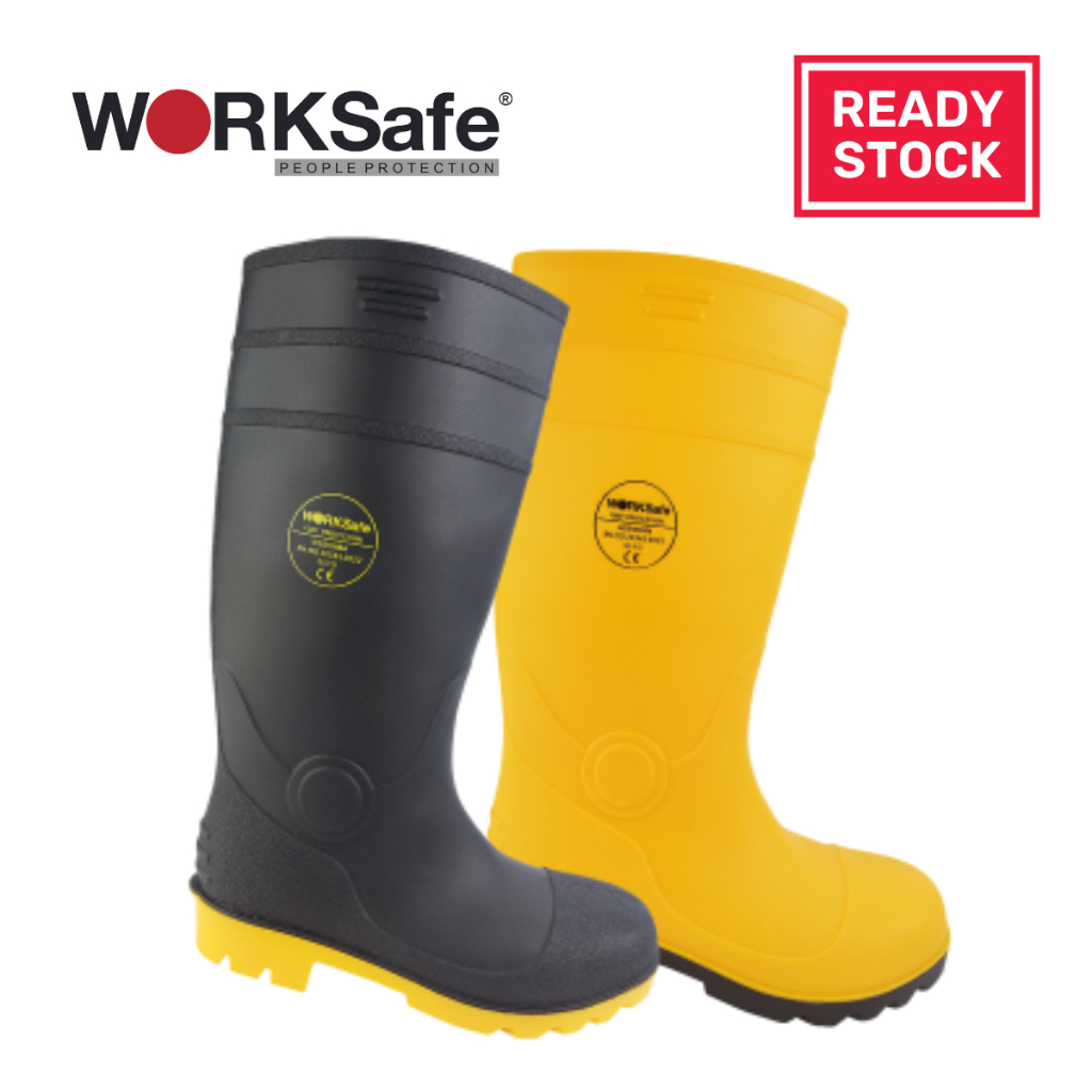 WORKSAFE BLACK YELLOW PVC VULCAN BOOTS WITH STEEL TOE CAP AND Very well made.