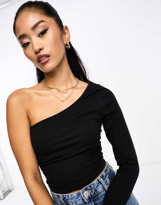 Black One Shoulder Long Sleeve Crop Top New Look Very well made.