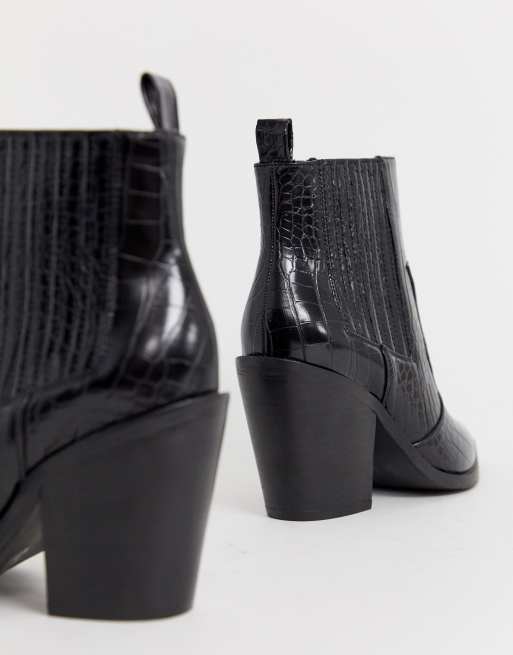 ASOS DESIGN Elliot western ankle boots in black croc Very well made.