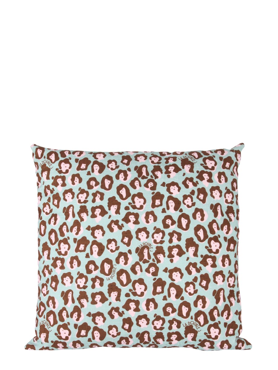 LA DOUBLEJ CUSCINO QUADRATO IN COTONE CON STAMPA LADY LEOPARD
