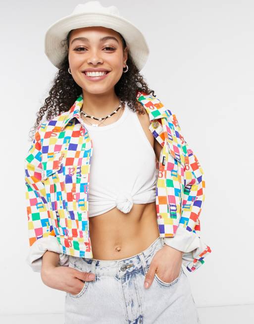 DIAGONAL RAINBOW CROPPED JACKET Jordache Very well made.