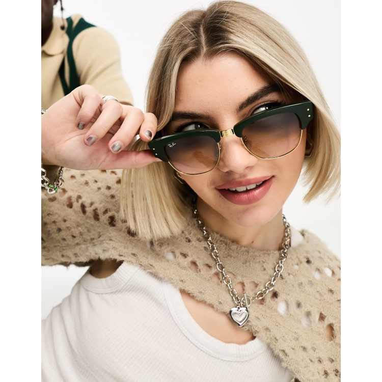 Ray Ban Mega Clubmaster round sunglasses in green with brown lens Very well made.