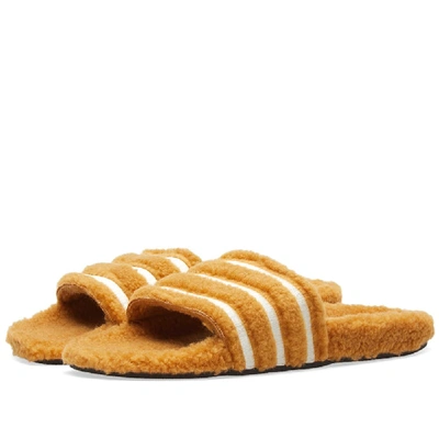 Adidas Originals Adilette Furry Slider Sandals In Tan Black In Very well made.