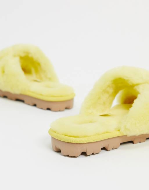UGG Fuzzette cross strap fluffy slippers in yellow ASOS Very well made.