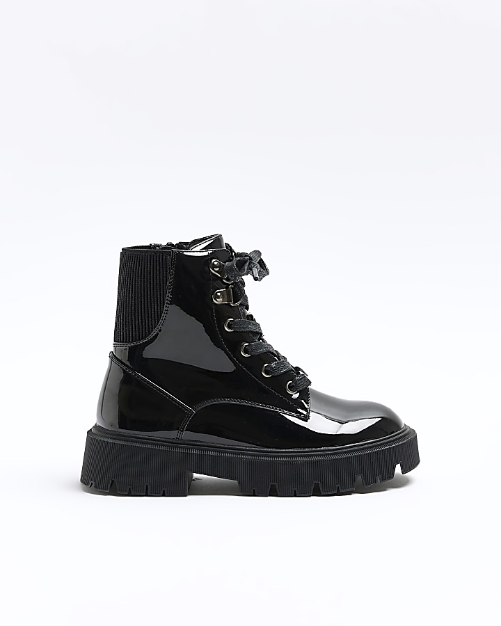 Girls Black Wide Fit Hiker Lace Up Boots River Island Very well made.