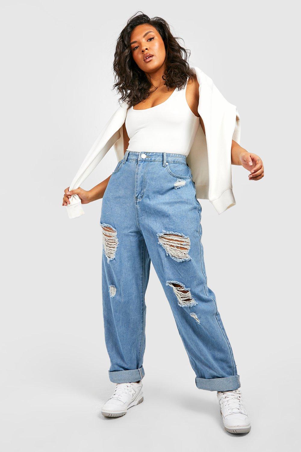 Women s Plus All Over Ripped Mom Jeans Boohoo UK Very well made.