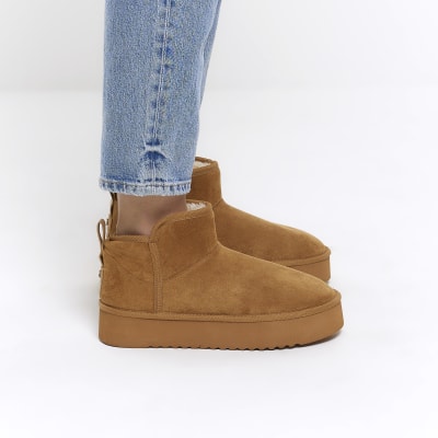 River Island Faux Fur Platform Boots in Brown Lyst UK Very well made.