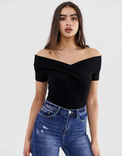 ASOS DESIGN Top ajust paules d nud es Noir Very well made.