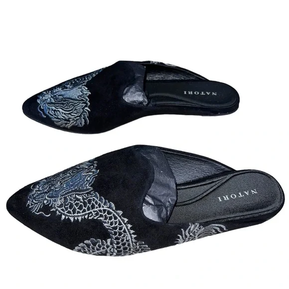 Natori Shoes Natori Dragon Image Embroidered Suede Mule Very well made.