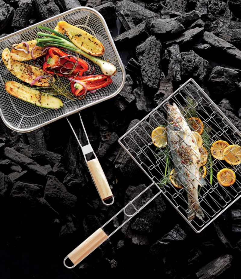 Mesh Grill Basket with Wood Handle Reviews Crate Barrel Very well made.