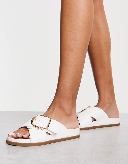 SANDALI BIANCHI BASSI CON FASCE INCROCIATE E CINTURINO Very well made.
