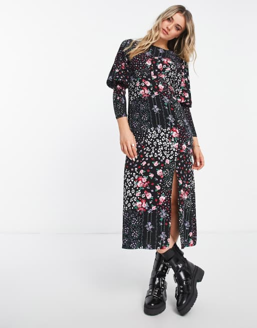 Miss Selfridge shirred sleeve midi tea dress in patchwork floral floral embroidered combined dress ClassicfuncenterShops Very well made.