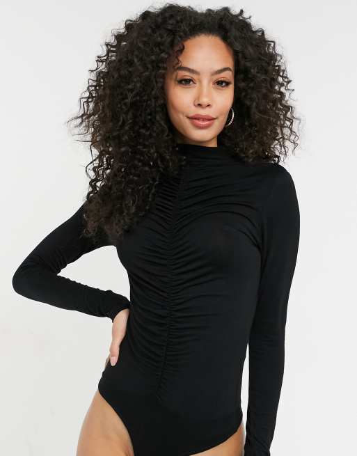 Missguided Tall long sleeve bodysuit with ruched front in black Very well made.