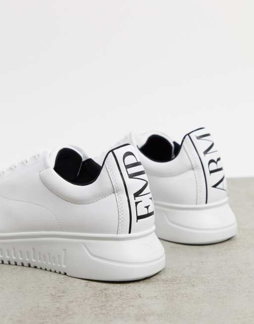 Emporio Armani Sneakers in pelle bianche con etichetta posteriore con logo Very well made.