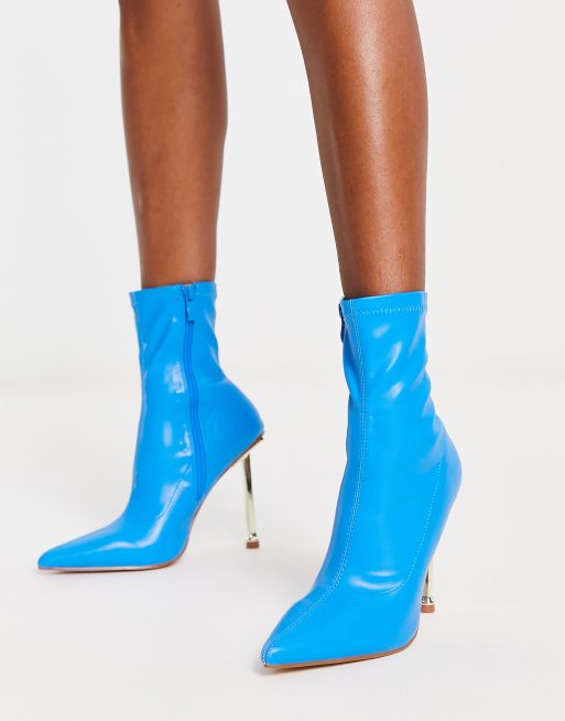 ASOS DESIGN Roma square toe heeled sock boots in blue Very well made.