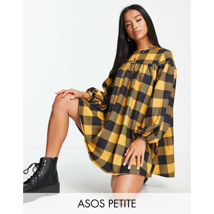 ASOS DESIGN Petite oversized smock dress with tie back in mustard gingham print ASOS Very well made.