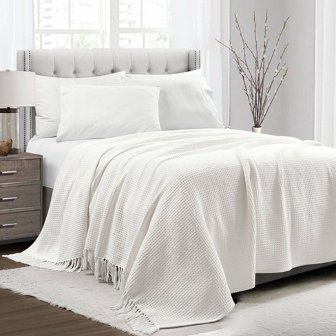 Full Queen Waffle Cotton Knit Throw Blanket White Lush D cor Very well made.