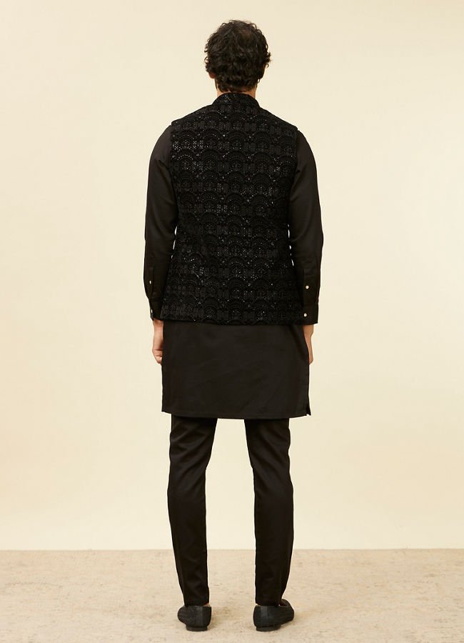 Kohl Black Scallop Shell Patterned Nehru Jacket for Men Manyavar Black XL Very well made.