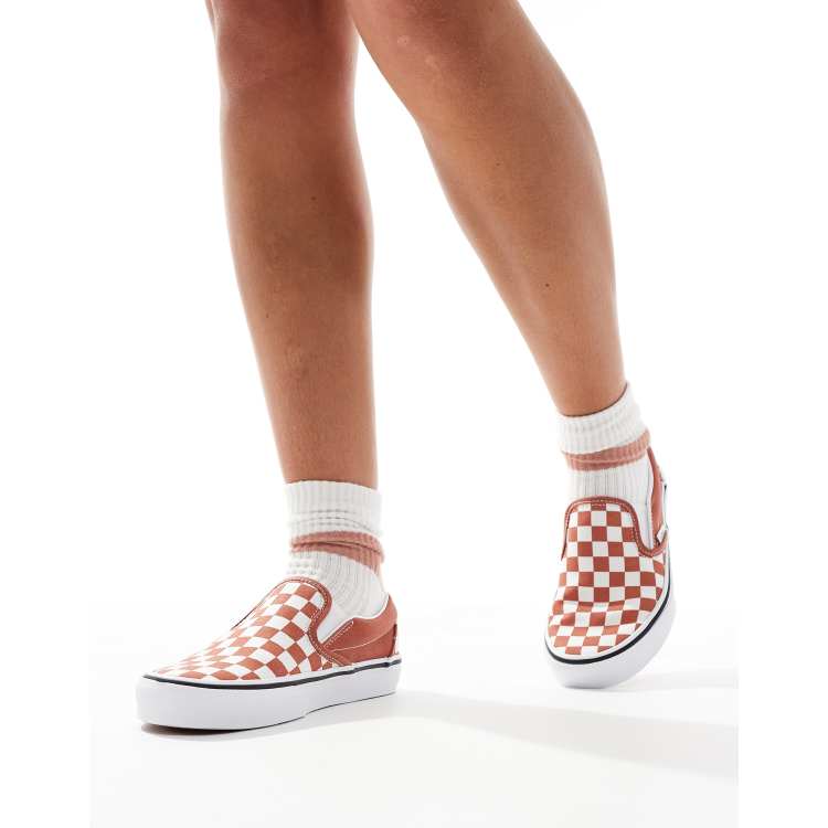 Vans classic slip on trainers in burnt orange and white checkerboard ASOS Very well made.