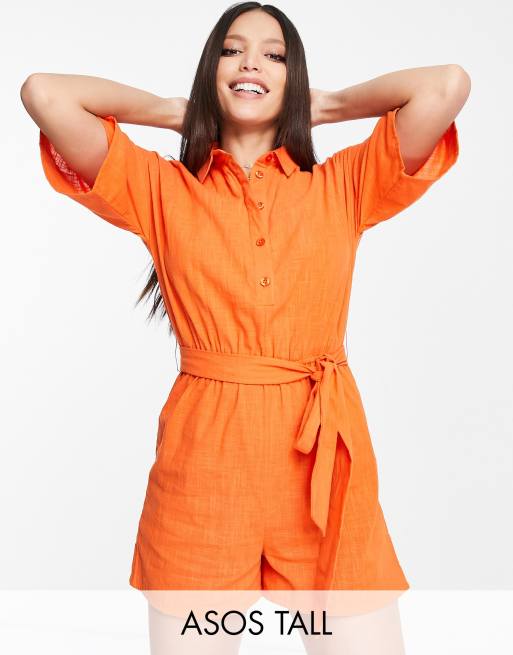 ASOS DESIGN Tall belted beach shirt playsuit in orange ASOS Very well made.