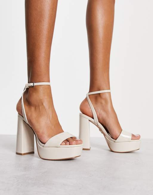 Steve Madden Lessa platform heeled sandals in bone patent Very well made.