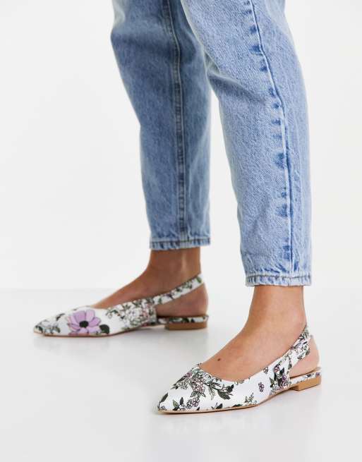ASOS DESIGN Wide Fit Leela bow point slingback ballet flats in floral Very well made.