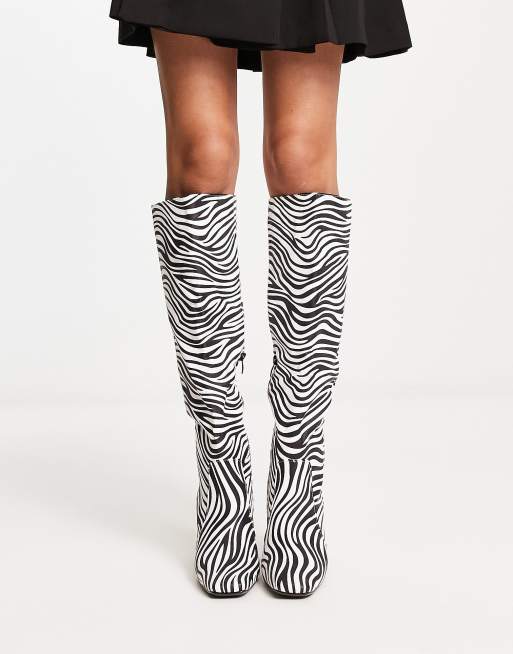 Truffle Collection square toe heeled knee boots in zebra print Very well made.