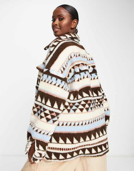 Noisy May oversized fleece jacket in brown pattern print Very well made.
