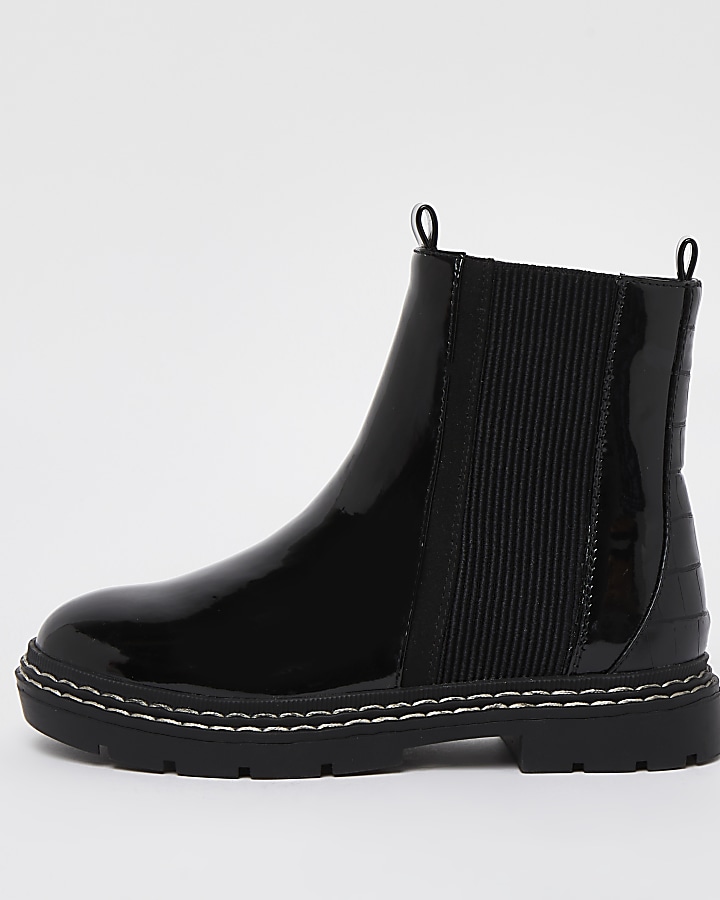 Girls black patent chelsea boots Very well made.