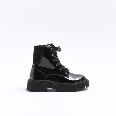 Girls black patent hiker chunky boots River Island Very well made.