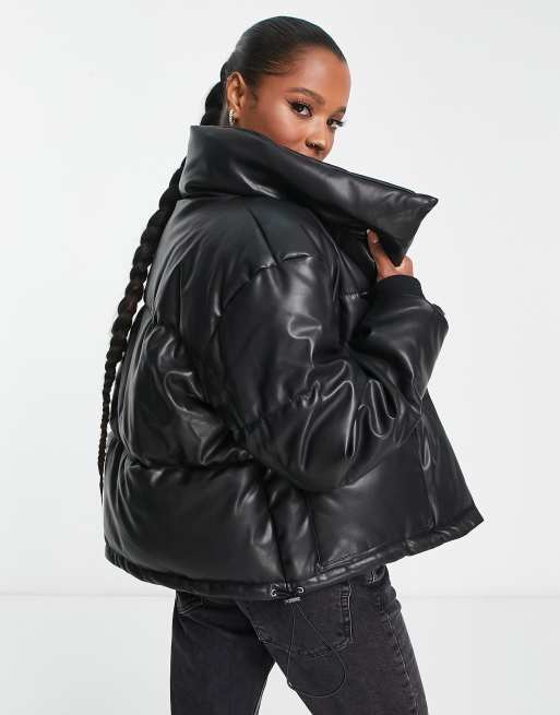 Missguided Petite faux leather puffer jacket in black Very well made.