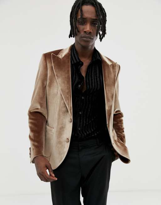 ASOS DESIGN skinny 70s blazer in tan velvet and satin piping Very well made.