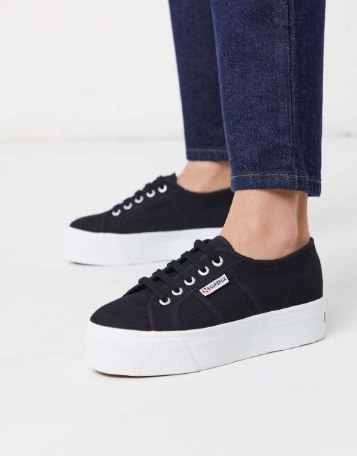 Superga 2790 4cm flatform trainers in black on white Very well made.