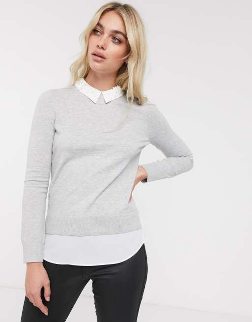 Ted Baker Women s Gray Mockable Frill Collar Sweater Size 4 L XL Very well made.
