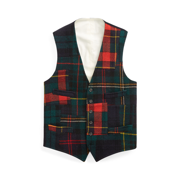 Patchwork Tartan Wool Vest for Men Ralph Lauren NO Very well made.