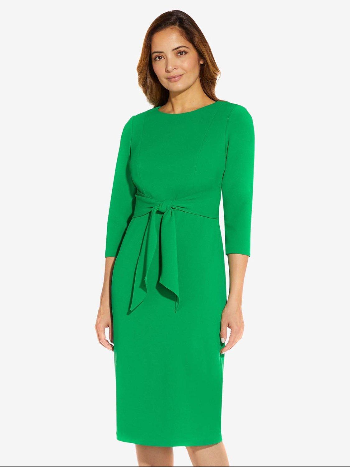 Adrianna Papell Knit Crepe Tie Waist Sheath Knee Length Dress Very well made.