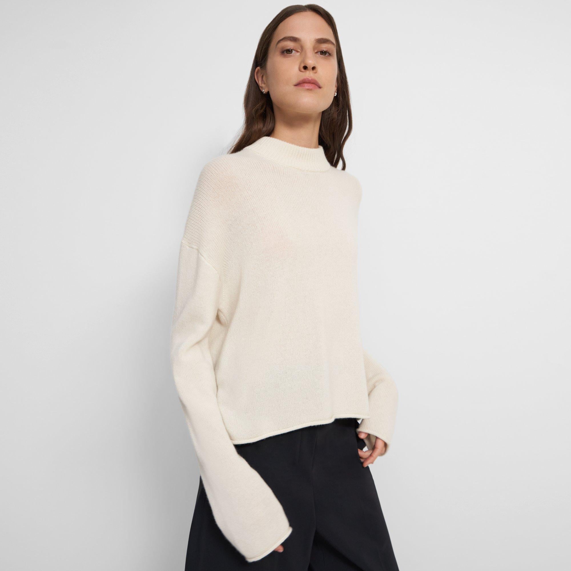 White Cashmere Cropped Mock Neck Sweater Theory Very well made.