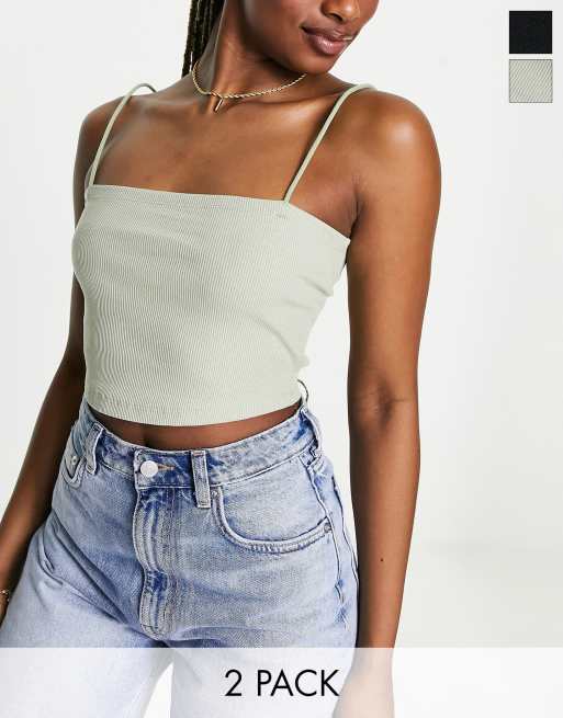 Miss Selfridge 2 pack skinny strap cropped cami in black and sage Very well made.