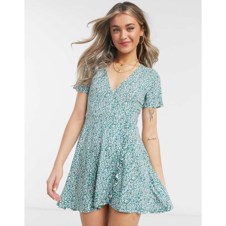 Pull Bear frill edge wrap dress in green floral ASOS Very well made.